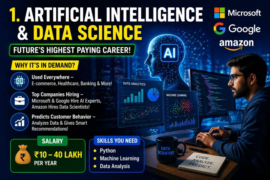 आज के समय में AI बढ़ती डिमांड को देखकर, इसे चुना बहुत जरूरी हो चुका है, जहां पर हमें हाई सैलरी, जॉब सिक्योरिटी और ग्रोथ देखने को मिलता है और पूरी दुनिया इसकी ओर आगे बढ़ रही है। इसके अलावा भी बहुत सारे करियर ऑप्शन है, जो बहुत तेजी से बढ़ता जा रहा है। इसे डिटेल से जानने के लिए आर्टिकल को अंत तक पढ़ना होगा।