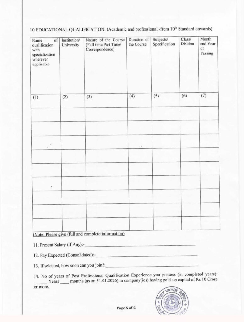 | शैक्षणिक योग्यता | उम्मीदवार का Institute of Company Secretaries of India (ICSI) का सदस्य होना अनिवार्य है |
